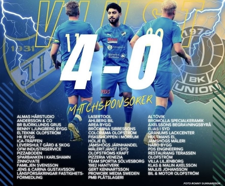 Derbyvinst🔥🔥🔥 Seger hemma i kommunderbyt mot BK Union med 4-0 💙 Matchfakta: 1-0 Jonathan Stark, assist Nouri Jemmali 2-0 Marcus Eilertsen, assist Nouri Jemmali 3-0 Marcus Eilertsen, assist Albin Maliqi 4-0 Jesper Håkansson, assist Jonathan Stark Jämshögs IF 17 aug 2025 0kommentarer