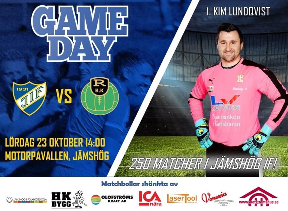På lördag spelas säsongens sista hemmamatch på Motorpavallen! I samband med matchen kommer vi även fira en sann LEGENDAR i föreningen då Kim Lundqvist gör sin 250:e match mellan stolparna i A-laget! I fotbollssammanhang gör detta honom till Stor Grabb, vilket är en bedrift värd att firas. Kom och heja fram laget och denna ikoniska målvakt till en ny seger och hållen nolla!! Jämshögs IF 21 okt 2021 0kommentarer