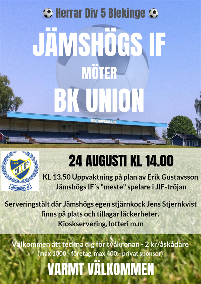 Hjärtligt Välkomna! Jämshögs IF 12 aug 2019 0kommentarer