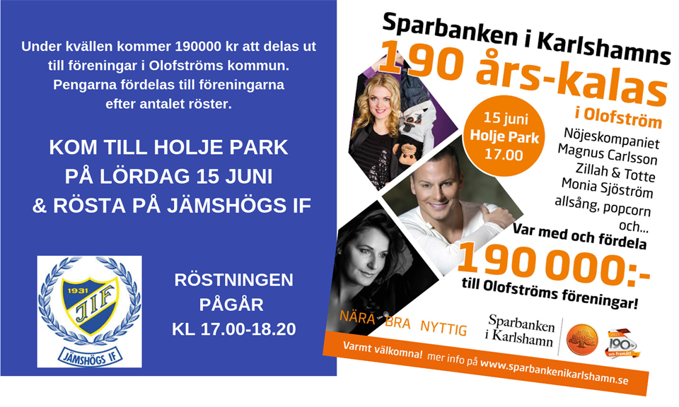 • Kom på kalas och rösta på DITT Jämshögs IF!